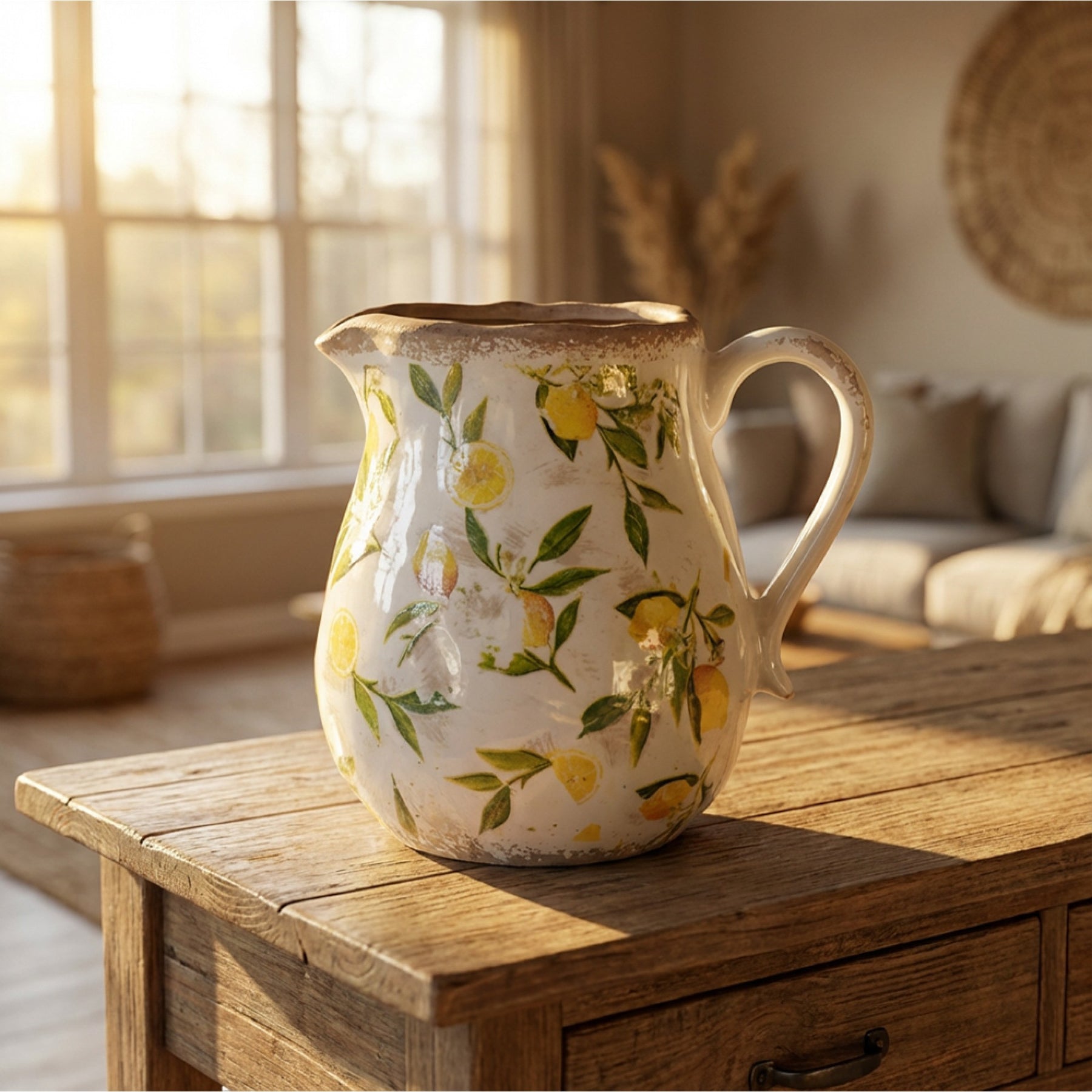 Bring a splash of artisan charm to your home with this delightful ceramic lemon pitcher from the Tara Lane Collection. Handcrafted with care, this versatile piece works beautifully as a vase for fresh blooms or a charming decorative accent on any shelf or mantelpiece. Its timeless design and quality ceramic construction make it the perfect gift for those who appreciate thoughtful, handmade home décor. Whether you're arranging wildflowers or simply displaying it as a standalone statement piece, this pitcher adds warmth and character to any room.